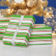 Den här pappra designen har en jul och helgdagar med temat grönt, vit och röd färgad, strimlad mönster. Papper som detta kan användas när man slår in gåvor eller presenter som ges för att fira en födelsedag, ett bröllop, en årsdag eller något annat evenemang.