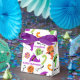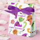 Det här är en roligt Halloween-affär med godis, pumpor och häxor på vit bakgrund. Du kan välja personlig för att ändra namn på rutan och texten. Det kan ges i party eller vid företagsevenemang.