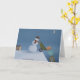 I ett underhållande helgdag-kort ser vi att snögubbe dumpar verktyg från snö från ett klipp under mörkret. Rubriken lyder "Överlevnadsstrategier för Snögubbe".