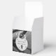 Roligt hjärtformade kärlek-lås med favoritboxar för nyckelhål. Anpassa med brud och brudgumm namn. Elegantens skripttypografi med klassfotografi. Överför din egen bild som tillval. En del av budgetvänlig samling med chic. Romantiskt svart och vitt fotografi av den hjärtformade padlock-järn.