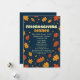 Samla dina vänner för en rolig höstfest med denna stilrena och moderna inbjudan till Friendsgiving-middag. Designen har fallande orange och gula löv mot en kontrasterande mörkblå bakgrund. Detta kort är helt anpassningsbart med din adress, RSVP-information och ett speciellt meddelande om att ta med en maträtt till en potluck-middag.