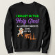 Roligt Christian Halloween Sweatshirt som läser: JAG BÖR I HELIGAN GHOST ALL ANNAN SPÖKEN KAN GÅ TILL HELL, vilket ge är ett tydligt, starkt kristet budskap som vi bara litar på hos Gud. Utformningen omfattar fet snyggt, färgstark typografi och ett ghoul med kor genom den. Denna kristna Halloween-tröja har varit särskilt designad för troende som vill observera utan kompromisser på All Saints Kväll. Välj bland ett stort urval av Christian Halloween-kort, kläder och presenter, designade av Berean Designer. Matchande gåvor är tillgängliga.