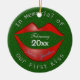 En första kyss är säker en händelse som ska minnas och firas! Den förtjänar dess egna prydnad för säsongen, precis för att se till att den ska glömms aldrig. Inte bör all mammor och pappor ha en trofé att gilla denna? Ljus röd läppar på grön glitterbakgrund. Text "i minnesmärke av vår första kyss" bildar en cirkla runt om läppar. Mellan läppar det något att säga "Februari 20xx" (vid standard) och på den lägre kanten "Helena" i rosor och "Jonathan" i bleken - blått. Datera, året, känd #1 och namnge #2 kan lätt skräddarsy. För att justera typsnitt eller färger klickar precis "skräddarsy detta" för att ta fram de inställningar.