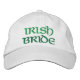Få på irländarna vid bröllop med den här söta vita broderade hatten med en grönt irländsk Bride-slogan. Roligt brudens sida hattar för ditt speciella tillfälle.