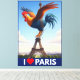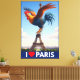 Rolig 3D-konst i Pixar-stil med temat "Jag älskar Paris" ger en lekfull, animerad twist till en av världens mest ikoniska landmärken. En jättelik tupp – full av fransk attityd och tecknad charm – sveper ner och landar rakt på Eiffeltornet, böjer omedelbart metallramen och får nitar och balkar att lossna. De överdrivna proportionerna, de starka färgerna och den mjuka Pixar-liknande belysningen ger scenen en livlig, filmisk känsla och förvandlar Paris till en scen för rolig, förtjusande kaos.