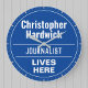 Roligt Minneshögtidlighållande av Stil Wall Plaque Gift i form av en murklocka för en journalist. Blå och vit plack. Redigera designen om du vill ändra ordalydelsen till kostym för presentmottagaren.