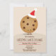 En inbjudan till utbyte av julkakor. Den här inbjudan innehåller en leende chokladkaka från chip som bär en tomtehatt på en ljusbrun bakgrund. Lägg bara till din information, skicka ut dessa inbjudningar och gå sedan till bakning! Jul Cookie Exchange-inbjudan Sweetsham Food Art | ©Melissa Patton - Artist/Illustrator