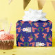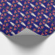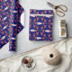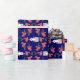 En papper omslutning till jul med mönster av Santas, Holly och Ho, Ho, Ho på en mörk blått bakgrund som du lätt kan ändra med hjälp av Redigera. Utformningen kommer från ett handmålat pappert kollage av Judy Adamson.