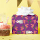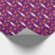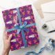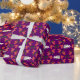 En papper omslutning till jul med mönster av Santas, Holly och Ho, Ho, Ho på en lila som du lätt kan ändra med hjälp av Redigera. Utformningen kommer från ett handmålat pappert kollage av Judy Adamson.