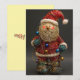 En roligt och ett krångligt julkort som skildrar ett Jultomten som är inslaget i en tråd. Det här är ett platt och dubbelsidigt kort. Baksidan säger: God jul!