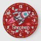 Roligt killpojkar Raketrymd mörk röd väggklocka