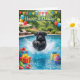 Rolig födelsedagskort med Labrador-valp som störtar sig i poolen