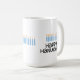 Tvåsidig utskrift med denna vismliga typografi Lycklig Hanukkah Mugg. Designad för 15 oz mugg/11 oz mugg finns också tillgänglig. Dishwasher/Microwave-försäljning.