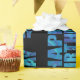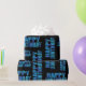 Fyll dina gåvor med färg med den här roligten och papper inslagning. Mönstren "Grattis på födelsedagen" är designat med brev i marmerade blå toner med svart bakgrund.