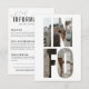 Anpassa den här roligten, ett enkelt och modernt "INFO"-kort för foto på dubbla-sidan i bröllopsinbjudan för ord, med en utklippt "INFO"-design från ord ram som gör att du enkelt kan ladda upp ditt anpassningsbar foto på framsidan och anpassa texten på baksidan! ♥ Obs! Fotot kan behöva justeras för att rymmas perfekt i OSA ord - klicka på den blå knappen "Redigera med design verktyg" i grund på skärmen "Personalize", navigera till "Front" lagrar, klicka på fotot lagrar, justera och klicka på knappen "Klart" i det övre höger hörnet för att göra det till ditt!