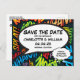 En modern tecknad bok-design i roligt som gör att du kan anpassa dig till ditt namn och information för att meddela datum för ditt speciella bröllop-datum. En coola-, trendig- och roligt-design som sätter in den vita fläcken på din dag. Den omvända informationen innehåller ytterligare händelseinformation. Designad av Thisisnotme©