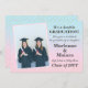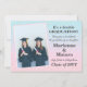 Det är en dubbla studenten. Roligt och moderna twillingar har en inbjudan till högskoleannonsering i studenten med guld, blått och rosa mönster. Anpassa texten för att stolt tillkännage studenten för dina döttrar och deras klassår och inbjudan era gäster till ett öppet hus eller party.