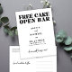 Minimalistisk fet typografi svart och vit rolig bröllops sparad datum vykort med en trendig "gratis tårta öppen bar behöver vi säga mer" skrift.