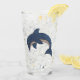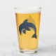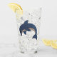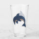 Denna glastumör för drycker har en roligt som hoppar över delfinen, som är en mousserande mörk blått med vit undersida på fram- och baksidan.