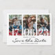 Roligt Multifoto Spara datuminbjudan med fet datum brev som visas mot 3 anpassningsbars fotoområden. Lägg till dina personliga foton till det här kortet för att visa hur unik din kärlek är. Kortets baksida innehåller ett område där QR-koden kan länkas till bröllop webbplats eller social-mediekonto.