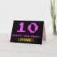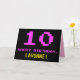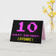 På framsidan av den här roligten, gäk och nörd födelsedag har hälsningskortet ett stort nummer "10" och meddelandet "GRATTIS PÅ FÖDELSEDAGEN," färgad rosa, tillsammans med en fet gult anpassade mottagare namn. Texten har ett utseende som inspirerats av det klassiska 8-bitars stil-datorspelet och videospelsgrafiken från 1970- och 1980-talet, och bakgrunden är färgadens svart. Insidan har ett hälsning-meddelande på anpassadets födelsedag, eller så kan det kanske rensas och lämnas tomt om ett meddelande ska skrivas för hand i stället. Ett sådant här födelsedagskort i fåniget kan vara en roligt för att erkänna någons tioårsdag. [~Z0000478]
