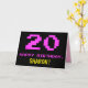 Framsidan av den här roligten, den gäckande och nonsens födelseteckendesignen har ett stort rosa nummer "20", tillsammans med meddelandet "GRATTIS PÅ FÖDELSEDAGEN," på rosa och en fet gult anpassningsbar mottagare namn. Texten har ett utseende som inspirerats av den 8-bitars stil--datorns/videospelsgrafik från 1970- och 1980-talet i vintage, och bakgrunden är färgadens svart. Insidan innehåller ett hälsning-meddelande från anpassadets födelsedag, eller kan kanske tas bort och lämnas tomt om ett meddelande ska skrivas för hand i stället. Ett sådant här födelsedagskort i fåniget kan vara ett roligt sätt att skicka ett meddelande om att fira någons tjugonde födelsedag. [~Z0000478]