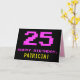 Framsidan av den här roligten, njud- och högtidliga hälsningskortet har ett stort nummer "25" och meddelandet "GRATTIS PÅ FÖDELSEDAGEN," rosa för färgad, tillsammans med en fet gult anpassningsbar mottagare namn. Texten ser inspirerad ut av den klassiska 8-bitars stil-video-/datorspelgrafik från 1970- och 1980-talen, och bakgrunden är svart på färgad. Insidan innehåller ett hälsning-meddelande från anpassadets födelsedag, eller kan kanske tas bort och lämnas tomt om ett meddelande ska skrivas för hand i stället. Ett sådant här födelsedagskort i fåniget kan vara ett roligt för att erkänna någons tjugofemte födelsedag. [~Z0000478]