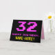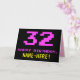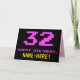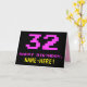 Framsidan av den här roligten, gäcket och nerigt-gratulationskortet har ett stort nummer "32" och meddelandet "GRATTIS PÅ FÖDELSEDAGEN," rosa för färgad, tillsammans med en fet gult personlig mottagare namn. Texten har ett utseende som inspirerats av den bild av 8-bitars stil-video-/datorspelsgrafik från 1970- och 1980-talen, och bakgrunden är färgadens svarta. Insidan innehåller ett hälsning-meddelande från anpassningsbarnas födelsedag, eller kan kanske tas bort och lämnas tomt om ett meddelande ska skrivas för hand i stället. Ett sådant här födelsedagskort för fånig personlig kan vara ett roligt sätt att erkänna någons trettioandra födelsedag. [~Z0000478]
