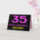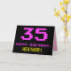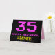 På framsidan av den här roligten har du ett stort rosa "35", tillsammans med meddelandet "GRATTIS PÅ FÖDELSEDAGEN" i rosa och en fetstilt gult som kan redigeras i namn. Texten ser inspirerad ut av det klassiska 8-bitars stil-videospelet och datorspelsgrafiken från 1970- och 1980-talen, och bakgrunden är färgadens svart. Insidan har ett hälsning-meddelande på personligens födelsedag, eller så kan det kanske rensas och lämnas tomt om ett meddelande ska skrivas för hand i stället. Ett sådant här födelsedagskort för fåniget kan vara ett roligt sätt att skicka ett meddelande med ett firande av någons trettiofemte födelsedag. [~Z0000478]