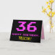 På framsidan av den här roligten har du ett stort rosa "36", tillsammans med meddelandet "GRATTIS PÅ FÖDELSEDAGEN," i rosa och en fet anpassade mottagare av gult. Texten har ett utseende som inspirerats av den klassiska 8-bitars stil video-/datorspelsgrafiken från 1970- och 1980-talen, och bakgrunden är färgadens svart. Insidan innehåller ett hälsning-meddelande från anpassadets födelsedag, eller så kan det kanske rensas och lämnas tomt om ett meddelande ska skrivas för hand i stället. Ett sådant här födelsedagskort i fåniget kan vara ett roligt sätt att skicka ett meddelande i firande om någons trettiosjätte födelsedag. [~Z0000478]