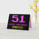 Framsidan av den här roligten, gäcket och nerigt gratulationskort för födelsedag har ett stort rosa nummer "51", tillsammans med meddelandet "GRATTIS PÅ FÖDELSEDAGEN," i rosa och en fetstilt gult som kan redigeras i namn. Texten har ett utseende som inspirerats av vintage 8-bitars stil-videospel och datorspel från 1970- och 1980-talen, och bakgrunden är färgad svart. Insidan innehåller ett hälsning-meddelande från anpassadets födelsedag, eller kan kanske tas bort och lämnas tomt om ett meddelande ska skrivas för hand i stället. Ett sådant här födelsedagskort i fåniget kan vara ett roligt för att fira någons femtioförsta födelsedag. [~Z0000478]