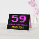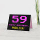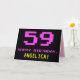 Framsidan av den här roligten, gäcket och navelskalendern med hälsningskortet har ett stort rosa nummer "59", tillsammans med "GRATTIS PÅ FÖDELSEDAGEN," på rosa och en fet gult anpassningsbar mottagare namn. Texten har ett utseende som inspirerats av det från 1970- och 1980-talen reflekterade 8-bitars stil-videospel och dataspel, och bakgrunden är svart på färgad. Insidan innehåller ett hälsning-meddelande från anpassadets födelsedag, eller kan kanske tas bort och lämnas tomt om ett meddelande ska skrivas för hand i stället. Ett sådant här födelsedagskort i fåniget kan vara ett roligt sätt att fira någons femtionionde födelsedag. [~Z0000478]