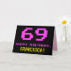 Framsidan av den här roligten, den gäckande och nonsens födelseteckendesignen har ett stort nummer "69" och meddelandet "GRATTIS PÅ FÖDELSEDAGEN," färgad rosa, tillsammans med en fet gult anpassningsbar mottagare namn. Texten har ett utseende som inspirerats av vintage 8-bitars stil-videospel och datorspel från 1970- och 1980-talen, och bakgrunden är färgad svart. Insidan har ett redigerbart hälsning-födelsedagsmeddelande, eller så kan det kanske rensas och lämnas tomt om ett meddelande ska skrivas för hand i stället. Ett sådant här födelsedagskort i fåniget kan vara ett roligt sätt att skicka ett meddelande med firande av någons sextionionde födelsedag. [~Z0000478]