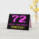 Framsidan av den här roligten, gäcket och nerigt-gratulationskortet har ett stort nummer "72" och meddelandet "GRATTIS PÅ FÖDELSEDAGEN," rosa för färgad, tillsammans med en fet mottagare av anpassade i gult namn. Texten har ett utseende som inspirerats av 8-bitars stil-datorspel och videospelsgrafik i vintage från 1970- och 1980-talen, och bakgrunden är färgadens svarta. Insidan innehåller ett hälsning-meddelande från anpassadets födelsedag, eller kan kanske tas bort och lämnas tomt om ett meddelande ska skrivas för hand i stället. Ett sådant här födelsedagskort i fåniget kan vara ett roligt sätt att skicka ett meddelande om att fira någons sjuttioandra födelsedag. [~Z0000478]