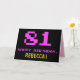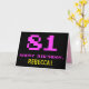 Framsidan av den här roligten, njud- och högtidliga gratulationskortsdesignen har ett stort rosa nummer "81", tillsammans med meddelandet "GRATTIS PÅ FÖDELSEDAGEN," på rosa och en fetstilt gult som kan redigeras i namn. Texten har ett utseende som inspirerats av vintage 8-bitars stil video-/datorspelgrafik från 1970- och 1980-talen, och bakgrunden är färgad svart. Insidan har ett hälsning-meddelande på personligens födelsedag, eller kan kanske tas bort och lämnas tomt om ett meddelande ska skrivas för hand i stället. Ett sådant här födelsedagskort i fåniget kan vara ett roligt för att fira någons åttio första födelsedag. [~Z0000478]