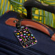 Detta gladlynt, roligt och att älska bagagemärkredesign presenterar ett mönster av hjärta formar av olikt storleksanpassar och färgade en variation av färger. Den presenterar också ett skräddarsy namn på bekläda, och personligkontakten specificerar på baksidaen.