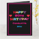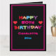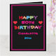 Lycklig vilken födelsedag som helst! Roligt och färgstarkt eget namn och Data Grattis på födelsedagen-kort. Klicka på Anpassa mallen om du vill anpassa den med ditt eget namn och år snabbt och enkelt. Det här kortet är en del av Charlotte 50:e födelsedagssamlingen i den här butiken. Du kan ändra 50 till valfritt år. Fraktaser över hela världen snabbt. 30 dagars återbetalningsgaranti. Roligt & färgat eget namn & Data Grattis på födelsedagen-kort, skapat av artist RjFxx.*Alla höger reserverade. #ZazzleMade