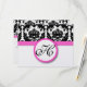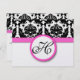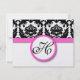 Vintage Modern Black and White Blommigt Damask Patterns med Bright Fuchsia Rosa Trim Wedding-inbjudningar. Perfekt för Rococo Baroque, Medieval Renaissance, Art Deco Art nouveau, Roaring 20:e Gatsby, Victorian Bröllop eller Elegant Farmhouse Bröllop Themes Venues.