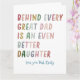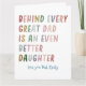 Fira den speciella banden mellan far och dotter med det här roliga och hjärtvärmande gratulationskortet! Med den lekfulla frasen "Bakom varje stor far finns en ännu bättre dotter" är detta kort perfekt för Fars dag, födelsedagar eller bara för att. Den stilrena designen och det humoristiska budskapet kommer säkert att locka fram ett leende på pappas ansikte och påminna honom om den otroliga dottern som alltid har hans rygg. Tillverkat av högkvalitativt kartong, är detta gratulationskort tomt på insidan och ger gott om utrymme för ditt personliga meddelande. Oavsett om du vill få honom att skratta eller uttrycka din uppskattning, är detta kort det perfekta valet för att fira din pappa på ett lättsamt och meningsfullt sätt.