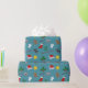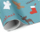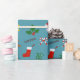 En rulle av glad julomslag papper med populära motiv.