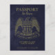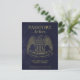 De här vykorten är ett roligt sätt att låta dina vänner och familj veta att spara datumet för ditt kommande destinationsbröllop. Designat för att likna ett amerikanskt pass, har de en guld örn på framsidan med bröllop parets namn, datum och plats för djuren. Baksidan liknar insidan av ett pass med ett foto och söt frimärke.