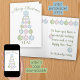 Det här moderna julkortet har tre runda icke-traditionella julprydnader i färg i grönt, rosa och blått med vita stjärnor. Utsmyckningarna staplas och delas upp storlekt för att bilda en Julgran-form. Det ornamenterade temat förs till insidan. Anpassa texten på omslaget och inuti.