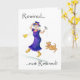 Ett lätt, uppmuntrande Pension Card med en kvinna som dansar och sjunger med lite hund, från en penna och tvättar illustration av Judy Adamson. Texten på ytterhöljet är "Försänkt utan trött" och du kan ändra meddelandet på insidan.