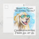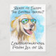 Söt och modern lyckönskningskort för pension med en rolig golden retriever på en tropisk strand. Originaldesign skapad från en av våra handmålade akvareller.