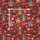 Roligt Retro Robots Illustrated Mönster (Red) Tyg