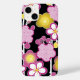 Roligt Retro Rosa och Gula Blommor Blommönster