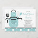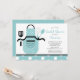 Börja med högerna med roligtens retro och kyss köket Inbjudningskort för möhippan med en apron & whisk, spatula och spoon i turkospolblått och vitt. Anpassa vår inbjudan med din duschinformation så är du redo att gå.