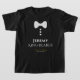 Dessa t-shirts med roligt är designade som favörer eller gåvor till bröllop ring. T-tröjan är svart och har en bild av en vit bukslips och tre knappar. Texten lyder Ring Bearer och har ett ställe att skriva in namn samt bröllop parets datum namn och bröllop. Underbart tillägg till en bröllop-säck.