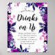 Förändrad Blommigt Lila blommor Lövs Stems and Vines Watercolor Grund Up Drinks on US Open Pub Wedding Reception Sign * Se min butik för att se hela samlingen!