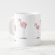 Roligt Rosa Flamingos Pen och Bläck Färg Teckning Jumbo Mugg